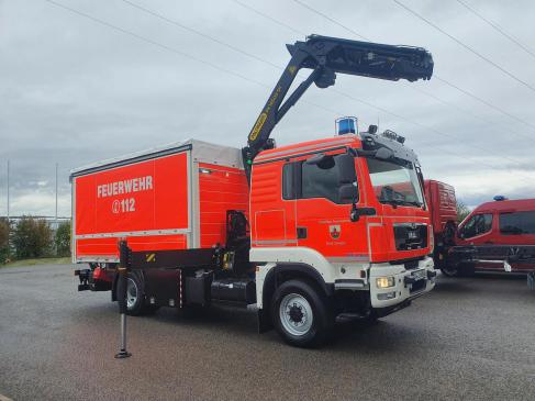 Kreisbrandrat Frank Bauer und Kreisbrandmeister Thomas Brüchert führten am 10.12.2020 die Abnahme des neuen Versorgungs-LKW bei der Freiwilligen Feuerwehr Zirndorf durch.