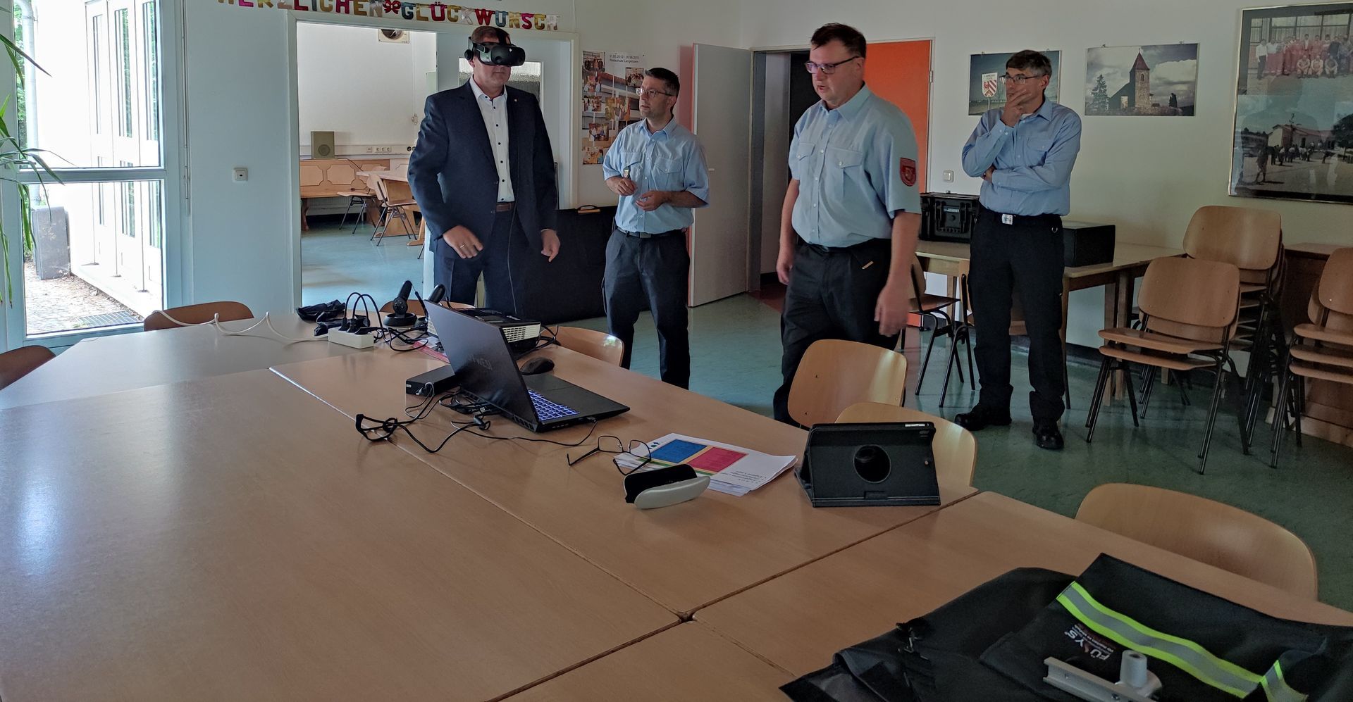 Es war an der Zeit, die Gerätschaften und die Software in der Atemschutzzentrale zu aktualisieren: unter anderem ist es jetzt möglich, mit der VR-Brille eines Feuerwehreinsatzsimulators einen virtuellen Einsatz durchzuspielen - perfekt für die taktische Ausbildung. Die Kosten dafür übernimmt der Kreisfeuerwehrverband zusammen mit einem dicken Zuschuss der Bayerischen Versicherungskammer.